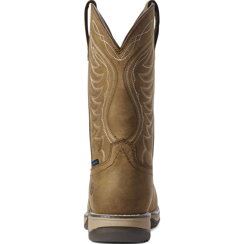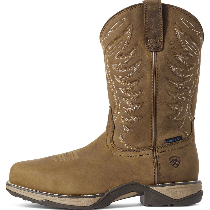 Ladies, when you need a boot that works as hard as you do, look no further than the Ariat® Women's Anthem western work boot. At 10 inches, this brown leather pull-on western work boot is built tough. Underfoot an EVA midsole is cemented and stitched to a rubber Duratread outsole, which is oil- and slip-resisting. A 90-degree defined heel helps you climb and keeps you supported throughout a long work day. Inside a textile lining and 4LR insole keep feet comfortable.