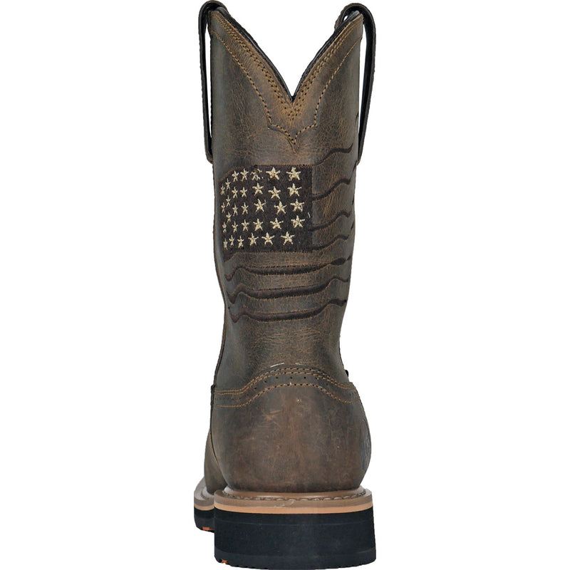 With the HOSS Rushmore, you get a Western Work style with safety toe that is waterproof and puncture-resisting. This 11-inch pull-on boot has a brown leather upper with tone-on-tone stitched patriotic adornment. Affixed with a Goodyear Welt is a cushion EVA midsole with durable rubber outsole.