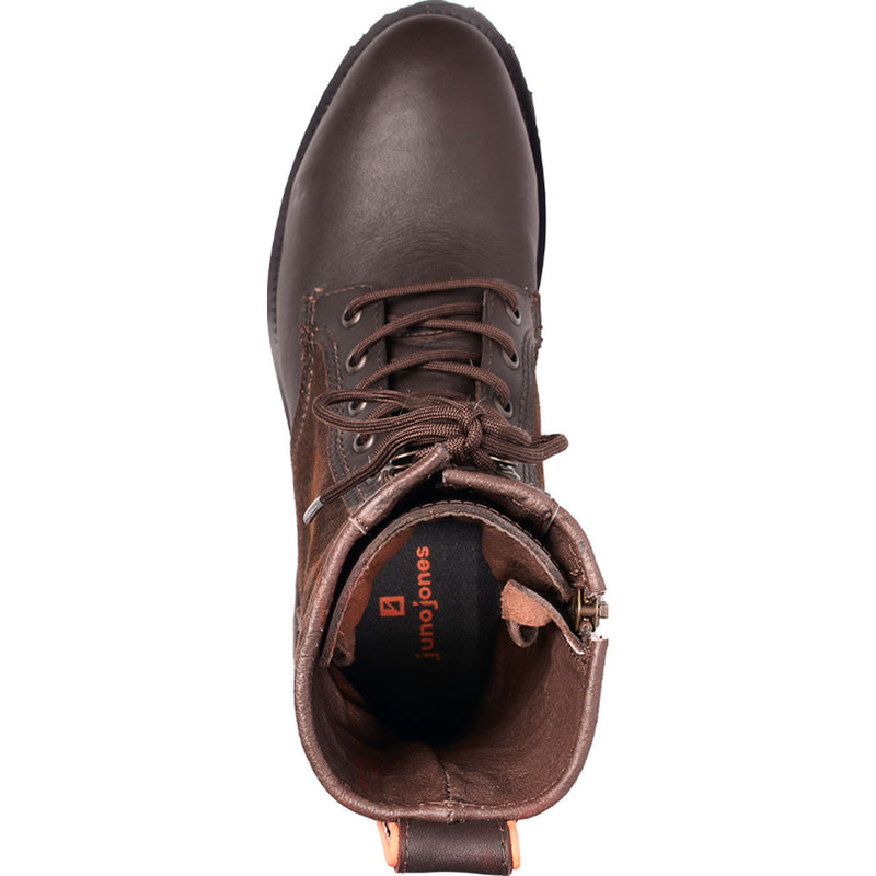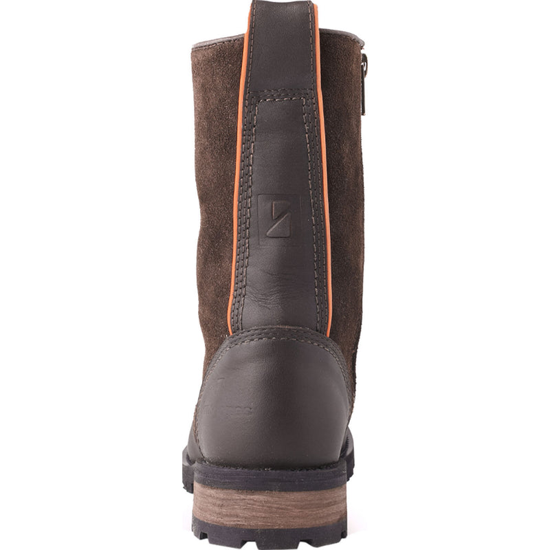 Designed by women; made for women, Juno Jones offers a fashionable work boot to wear on and off the job. Feast your eyes on the quality, environmentally certified leather of this Serpentine 8-inch lace-up boot. A vintage brass angled YKK zipper, in combination with a back pull strap, make these boots easy to pull on and take off. As an accent, and for visibility, a high-vis orange piping is affixed to the back pull strap.