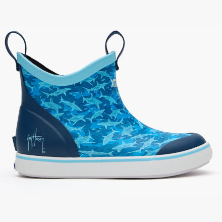 The Ankle Deck Boot is one of XTRATUF’s most iconic silhouettes due to its versatile design and Alaska proven performance. Now available in popular kids sizes for the toughest youth out there. The Kids ADB is the first slip resistant, non-marking rubber boot on the market designed specifically for young anglers. This style features Guy Harvey's original Shark camo.