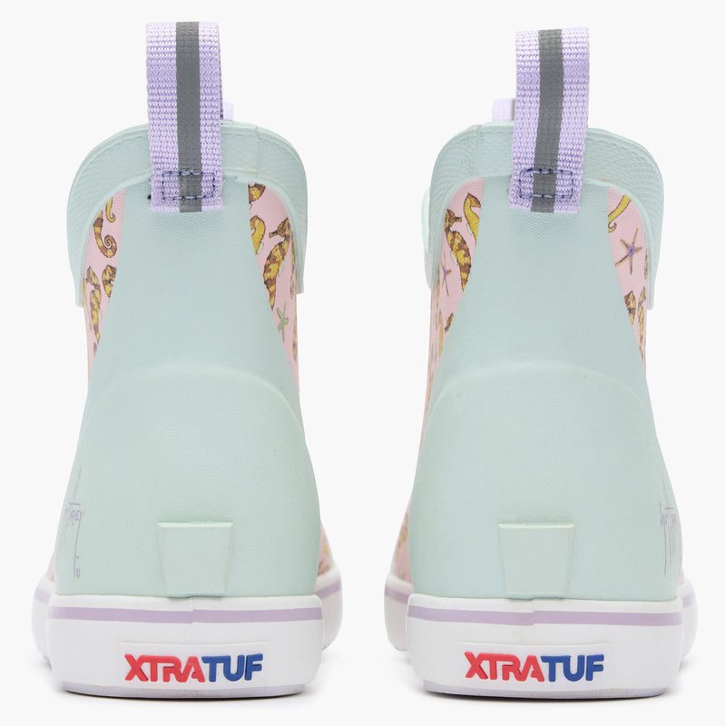 The Ankle Deck Boot is one of XTRATUF’s most iconic silhouettes due to its versatile design and Alaska proven performance. Now available in popular kids sizes for the toughest youth out there. The Kids ADB is the first slip resistant, non-marking rubber boot on the market designed specifically for young anglers. This style features Guy Harvey's original Seahorse print.