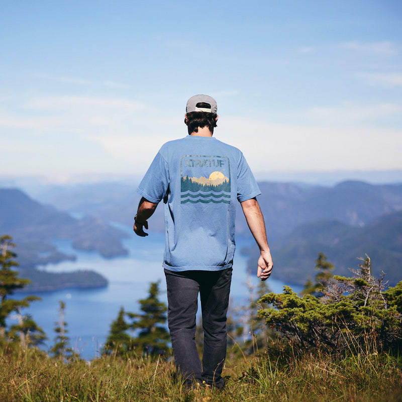 The Xtratuf Alaska short sleeve tee comes in a Elemental blue color and features a Xtratuf logo on the left side of the chest with an Alaska nature graphic on the back. Available in sizes S-XXXL.