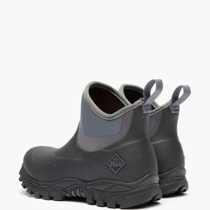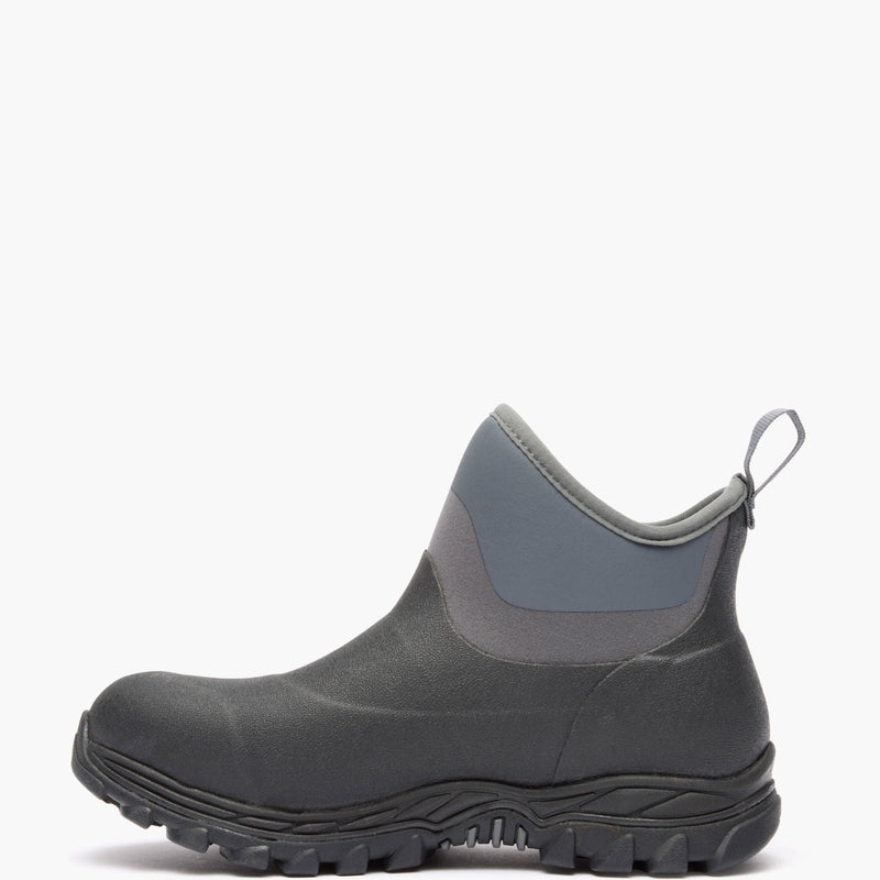 Introducing the Arctic Sport II Ankle. This new style is crafted from Muck's traditional hand laid rubber. To reduce weight and increase flexibility, we utilized our Muckskin technology. This technology features a printed rubber coating over neoprene that is 100% waterproof, 100% MUCKPROOF and abrasion resistant. This new ankle height allows for an easy on/off experience for all your wet, cold chores.