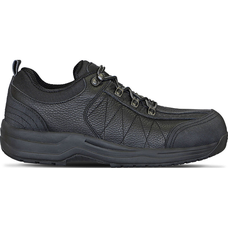 Available in all black, the men’s Dolomite work oxford has a seam-sealed waterproof full-grain leather upper with applied overlays on the heel and toe to mitigate abrasion. Housed within the round toe is a composite cap that meets ASTM F2413 standards for impact and compression. This shoe also is electrical hazard resisting to the protective toe work shoe standard. Underfoot is a highly cushioned rocker midsole with slightly defined heel for climbing ladders and a rubber outsole with a tread pattern that is certified to ASTM F3445 SR standards on wet and dry tile, making this an ideal shoe for indoor work environments. Available in extended widths, with the Ortho-Cushion system and having extra depth to accommodate orthotics, you can get the fit you need to be comfortable. Pick up your pair today.