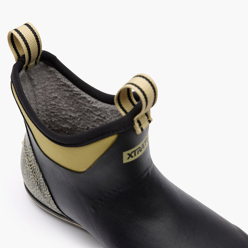 The XTRATUF Tailgate Collection features our iconic designs and features with new colors to rep your favorite teams! Built for life on the boat or at the tailgate, these styles are all slip-resistant and non-marking and will keep you on your feet from kickoff to the final whistle. The Tailgate Collection also features a special printed insole, and this pair has a fleece lining for extra warmth during those cold weather games.