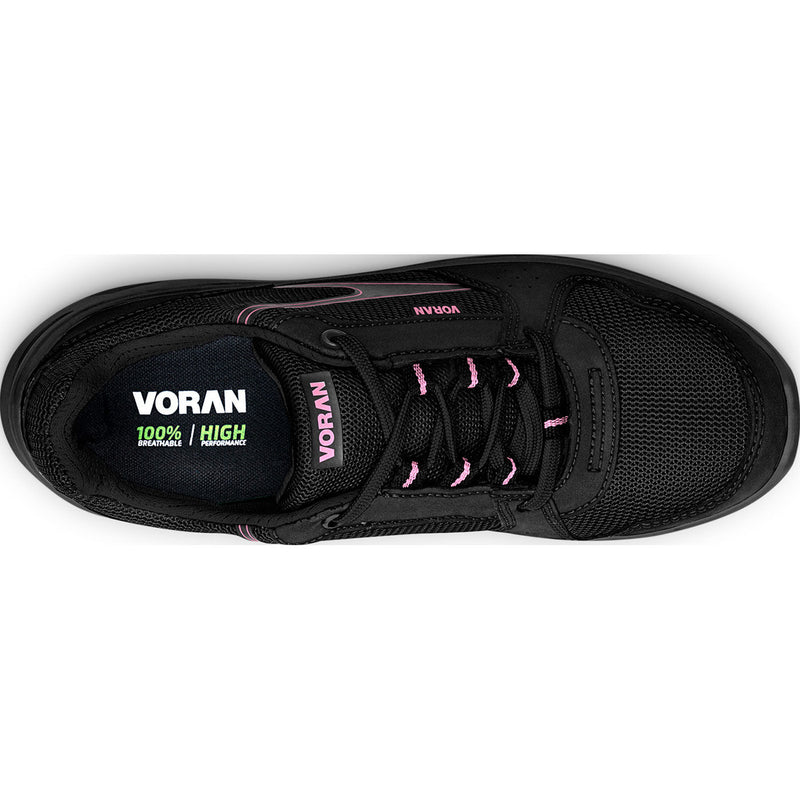 Perfect for the worker in motion all day, the Voran Sportsafe Energy line combines comfort with performance for those needing safety footwear in a light industrial work environment. This lace-up athletic style for women, in black with pink accents, has a combination upper of nubuck leather and textile with reinforced eyelets and Reflemax accents, helping with visibility in adverse conditions. A padded tongue an collar in combination a textile lining that promotes airflow and removable insole keep feet comfortable. Quality direct injection construction affixes the upper to an ultralight PU midsole with Infinergy by BASF core. This new technology mitigates compression with each step, helping reduce fatigue. The flat Ultragrip PU outsole is both abrasion and slip-resisting. Remain compliant at work with a non-metallic composite safety toe and electrical hazard resisting rating that meets and/or exceeds ASTM F2413 standards for protective toe work footwear. Get the comfort and durability you want in an athletic with the safety features you need. Pick up your pair today.