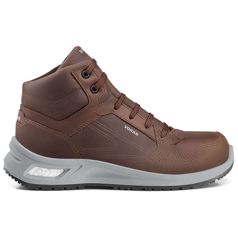Perfect for the worker in motion all day, the Voran Sportsafe Energy line combines comfort with performance for those needing safety footwear in a light industrial work environment. This 6-inch leather lace-up athletic style, in brown, has reinforced eyelets and Reflemax accents, helping with visibility in adverse conditions. A padded tongue an collar, in combination with a leather and textile lining that promotes airflow and removable insole, keep feet comfortable. This boot also has an embedded nylon shank that supplies arch support. Quality direct injection construction affixes the upper to an ultralight PU midsole with Infinergy by BASF core. This new technology mitigates compression with each step, helping reduce fatigue. The flat Ultragrip PU outsole is both abrasion and slip-resisting. Remain compliant at work with a non-metallic composite safety toe and electrical hazard resisting rating that meets and/or exceeds ASTM F2413 standards for protective toe work footwear. Get the comfort and durability you want in an boot with the safety features you need. Pick up your pair today.