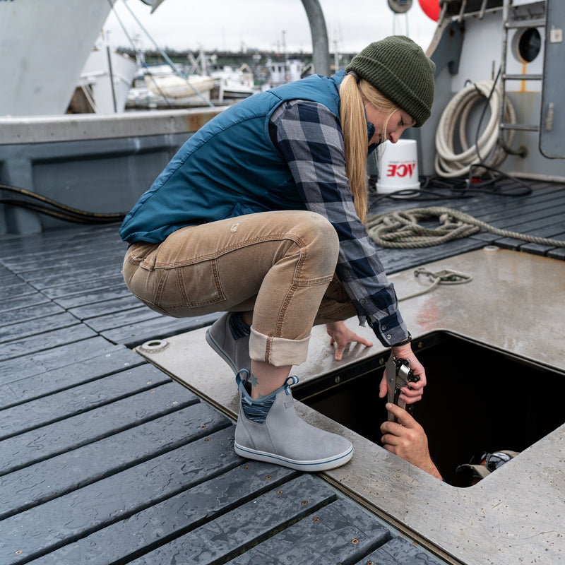 The leather version of the beloved Ankle Deck Boot is crafted of saltwater resistant leather that will wear to a fine patina over time. Built for coastal adventures on and off the boat these lightweight silhouettes sport the same XTRATUF® non-marking, slip resistant Chevron outsole as their rubber counterparts.
