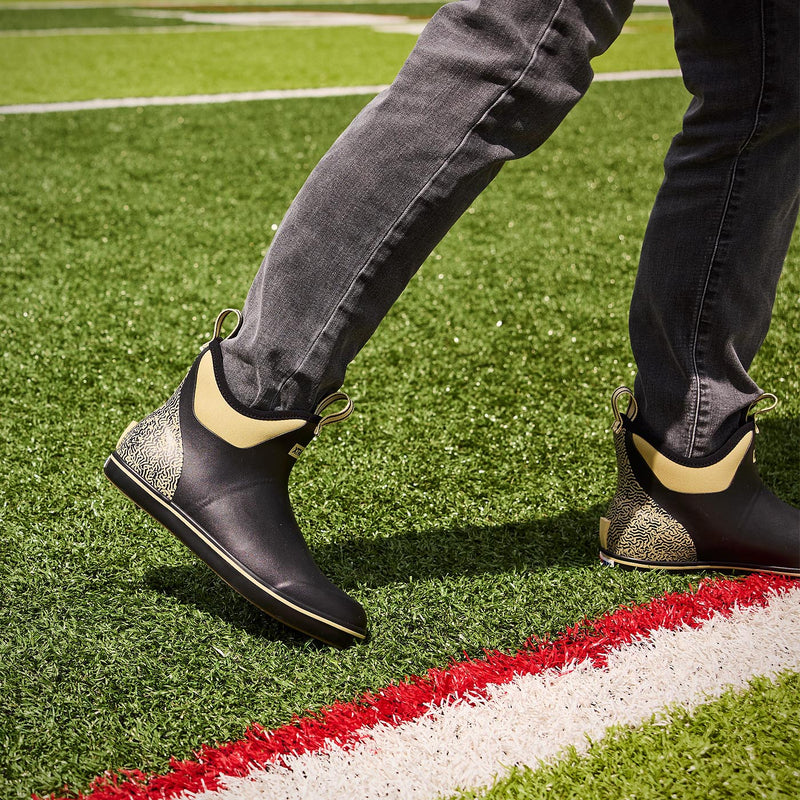 The XTRATUF Tailgate Collection features our iconic designs and features with new colors to rep your favorite teams! Built for life on the boat or at the tailgate, these styles are all slip-resistant and non-marking and will keep you on your feet from kickoff to the final whistle. The Tailgate Collection also features a special printed insole, and this pair has a fleece lining for extra warmth during those cold weather games.