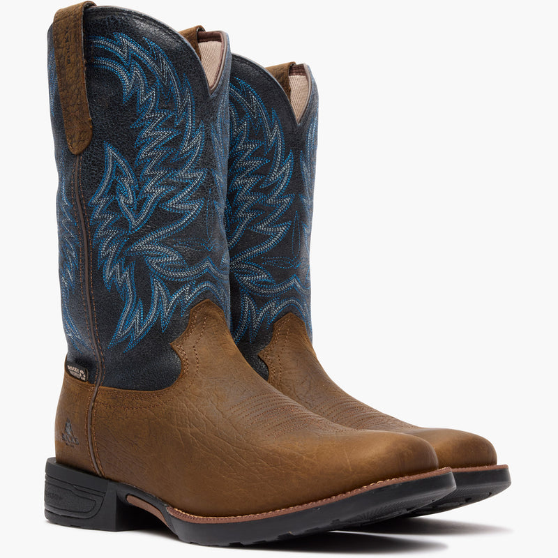 The Rocky® Bronco puts the grit in western boots. This 12" square toe boot features waterproof full grain leather and our guaranteed Rocky® Recycled Waterproof construction creating a moisture barrier so your foot stays dry during the job. Pairing our Rocky® Rebound heel with TPU heel stabilizer, fiberglass shank, and durable ¾ flex welt construction gives this boot a lasting lifetime that can keep up with your workload. Comfort is a priority in the Bronco, so we added an oil & slip resisting rubber outsole and our Rocky® Air-Port Lite® sponge PU footbed with memory foam which keeps your feet energized for long days ahead. This boot meets ASTM F2892 electrical hazard standard.