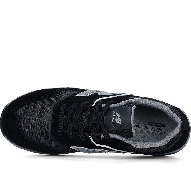 Weight-reducing technologies set the Elite Lite athletic work shoe apart from previous New Balance work footwear offerings. This men's lace-up style has a textile upper, in black. Debris-free construction helps to keep a clean interior. A composite toe cap within the shoe meets ASTM F2413 standards for impact and compression. These shoes also supply underfoot protection to ASTM standards for electrical hazards. Cemented to the upper is an Acteva foam midsole with a rubber outsole, ideal for indoor use, makes full contact with the ground surface and meets or exceeds ASTM F3445 slip standards for work footwear. Airport friendly, these work shoes do not contain metal components.