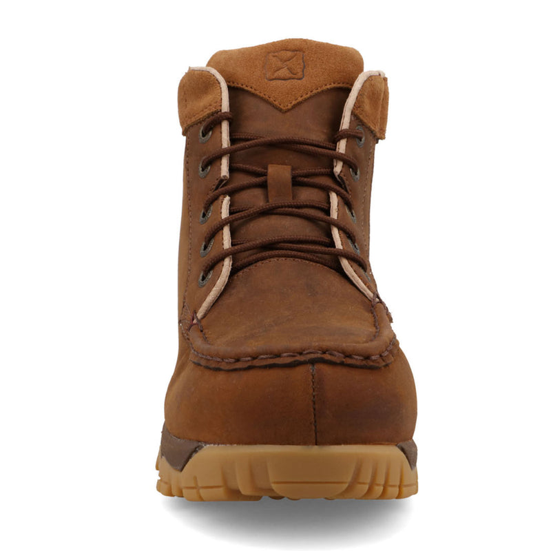 The moc toe houses an alloy protective toe cap certified to ASTM 2413 safety standards. This boot also meets or exceeds ASTM work footwear standards for resisting electrical hazards. An an oil- and slip-resisting rubber outsole with slightly defined heel is durable. Twisted X delivers on a durable and comfortable women's safety toe boot. Pick up your pair of these work boots today.